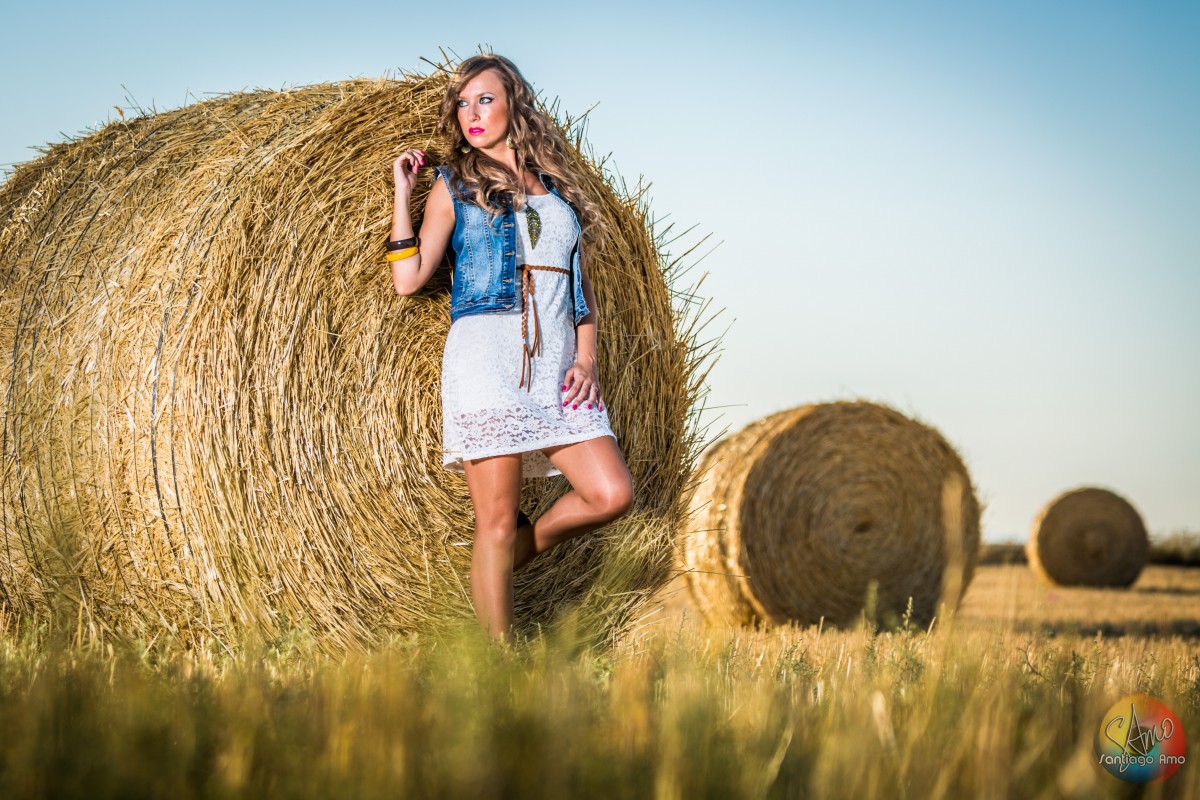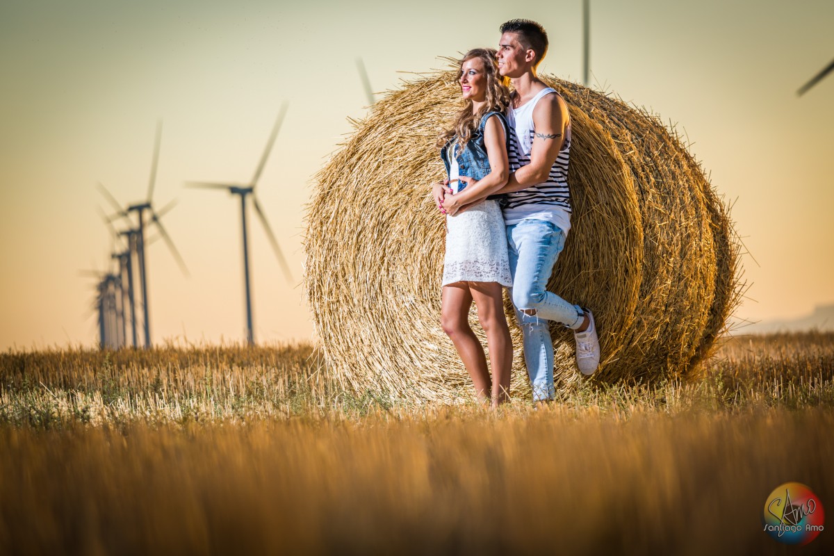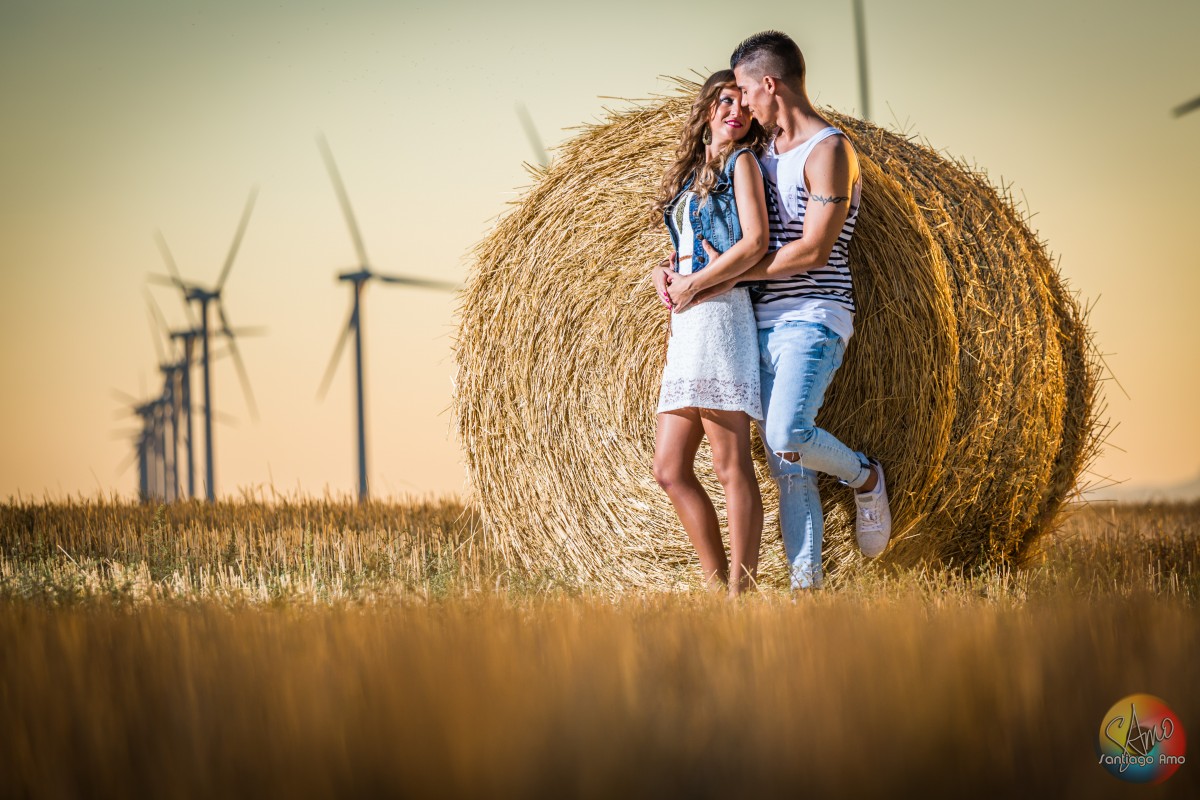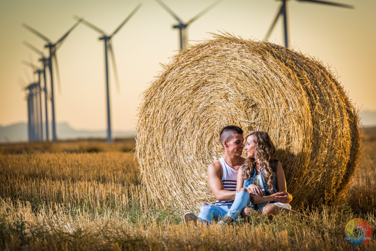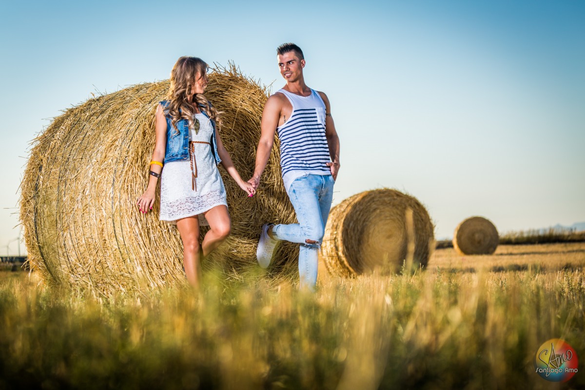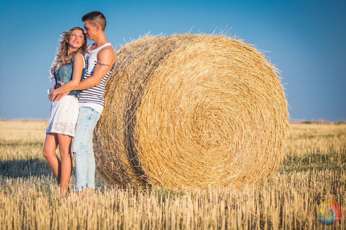 Preboda en campo con pacas de paja